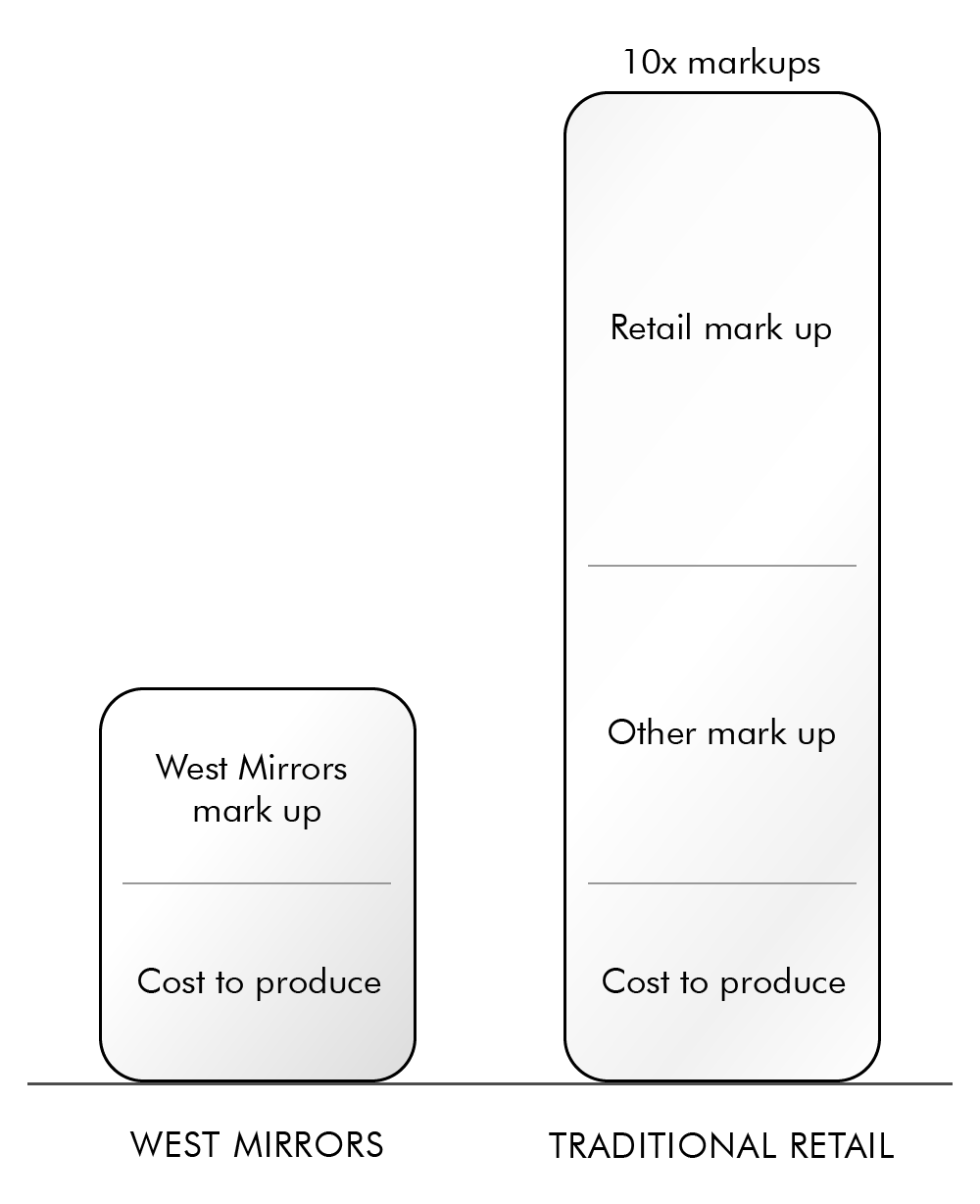 You don't have to break the bank to get luxury style and quality. Unlike traditional retail brands, we sell direct to you without the expensive middle-man price mark ups, making luxury mirrors accessible.